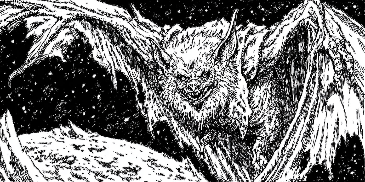 These colossal chiropterans have wingspans as wide as wagons and can lift horses into the dark in a single swoop. Dire Bats see a world painted vividly by sound—each shriek a lance of perception that pierces fog and shadow. When they dive, their sheer bulk sends gusts of wind roaring, scattering dust and knocking torches from their sconces. Their bites can tear flesh, spread disease, or worse, drain the lifeblood of their prey, while some variants—like the maleficent, venomous, and ghost strains—wreathe themselves in elemental flame or become immaterial at will. Hungry and skittish, the Dire Bat lives in territorial colonies, lying in wait to scavenge on prey of all sizes.