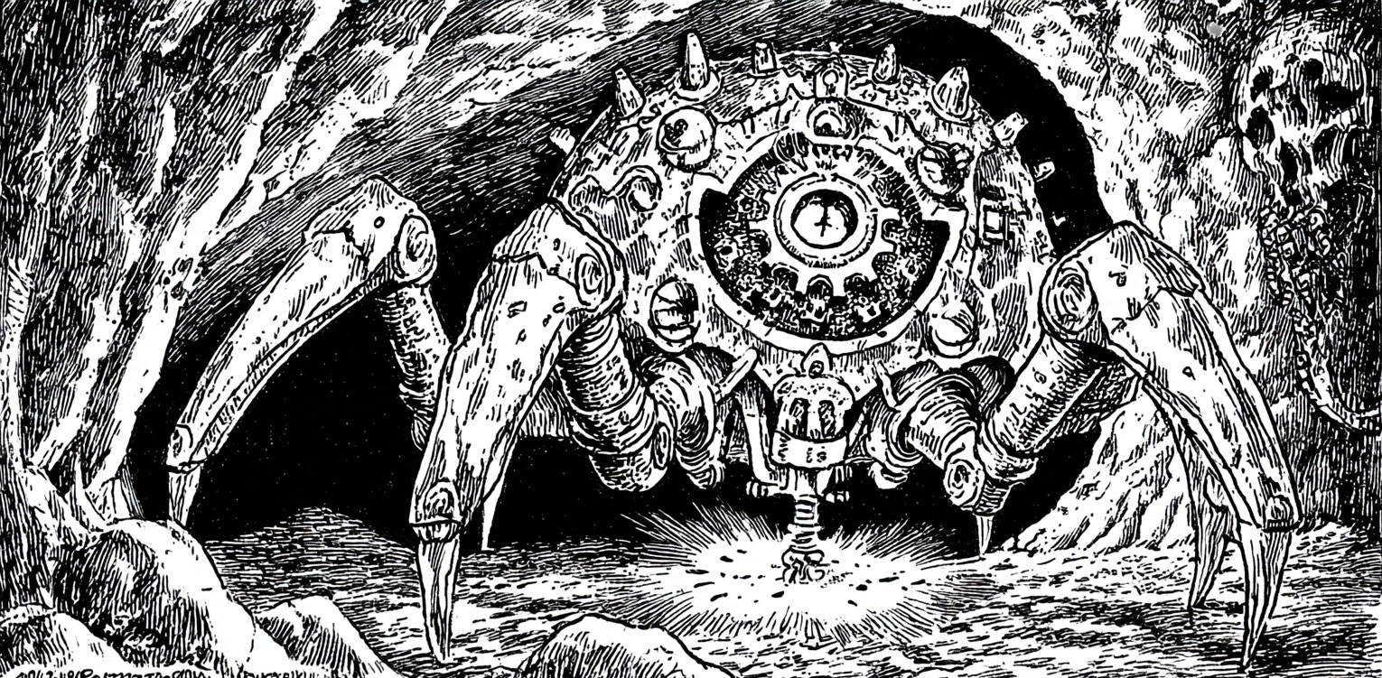 In play, a Clockwerk Titan isn’t just an opponent to face, but an event to endure. Clockwerk Titans are so well-outfitted as to be immune to mundane harm; their varied arsenal includes three types of weapons and/or a mechanism that effects a maleficence best suited for the fiction. They can shake the entire encounter with a shockwave, which can lay waste to the party and the environment. Flavor the Titan with a variation that best suits the intentions of its designer: hollow-bellied Titans carry armed crews into battle; laser-eyed colossi inspire terror in humanoid shape; and wheeled excavators eviscerate terrain. Despite all their might, Titans possess an automation vulnerability like all Clockwerk machines that the party can exploit if they spend the time to research the model. Remember: the satisfaction players derive from defeating a Titan derives as much from figuring out how it works as smashing it to bits.