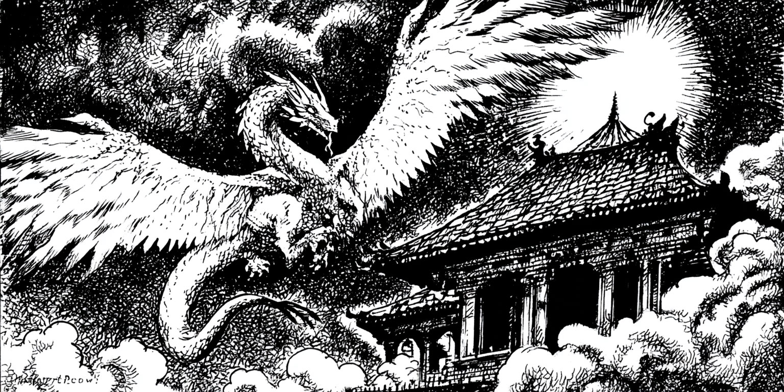 A chilling aura fills the air: all is calm, all is quiet, before the gleam heralding a celestial presence overtakes the landscape.