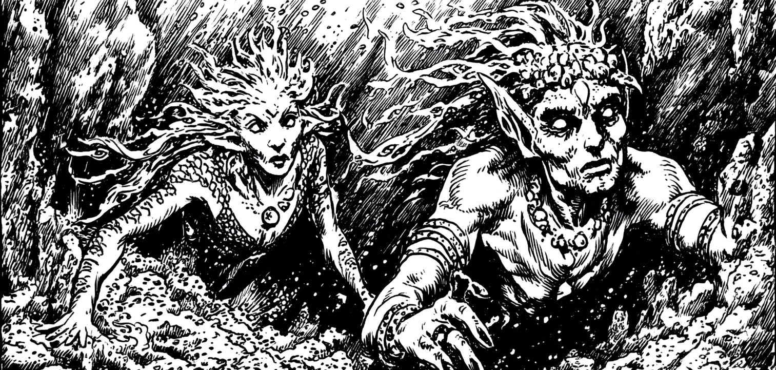 Thassalar are made up of the following clades: Bayleen (whalefolk, dolphinfolk); Raykin (sharkfolk, rayfolk); Ichthyans (fishfolk). They apply sticky secretions on their shields. If Thassalar are not able to immerse themselves in water for several hours at least once a day, they are considered cursed and cannot recover until they do.